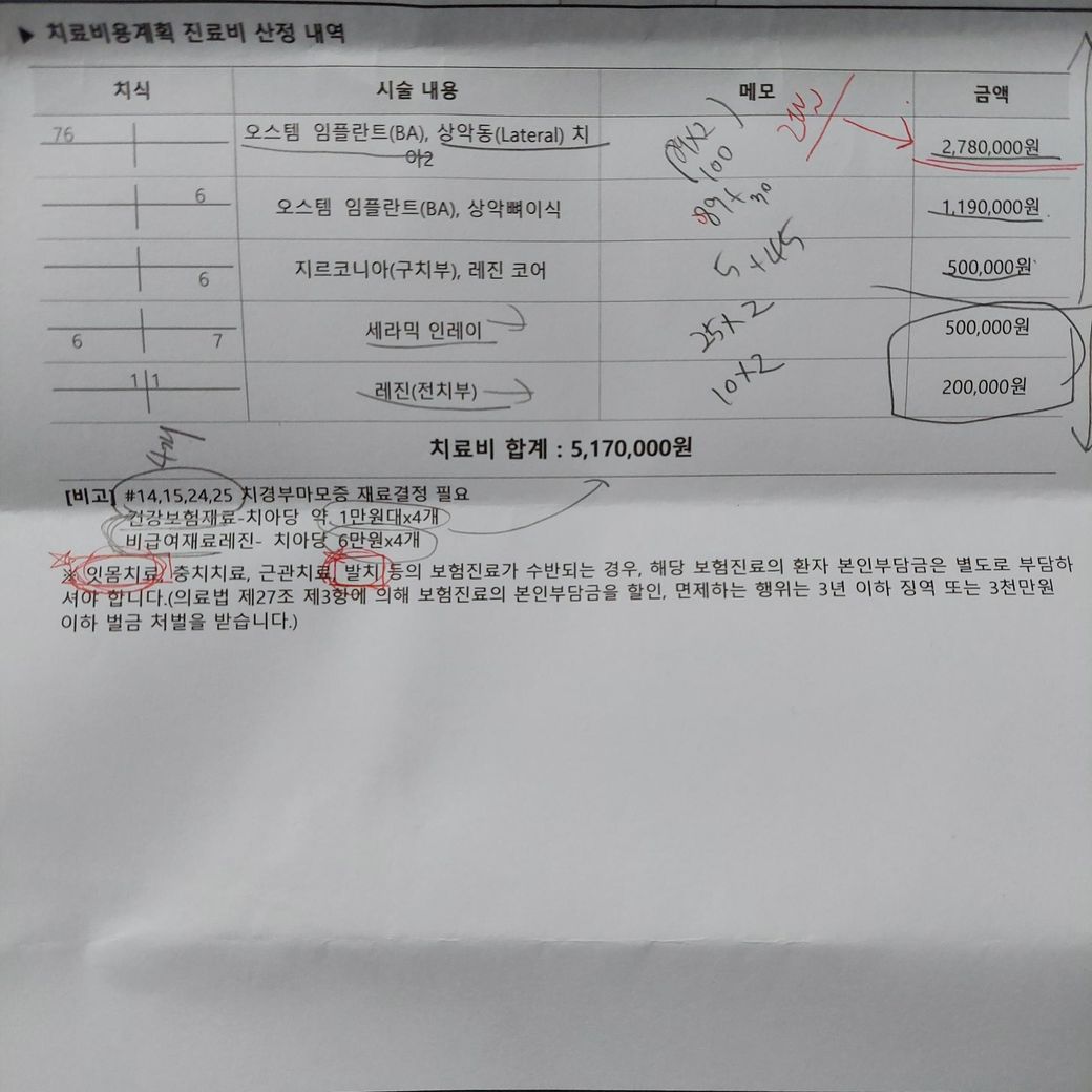 치과를 어디로 가는게 좋을까요? 내역 첨부