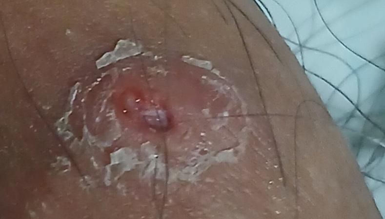 올려주신 사진상 모낭염과 같은 국소 염증성 병변이 발생하였고 농포가 터지거나 인위적으로 짜내면서 작은 궤양이 발생한 것으로 보입니다. 현재 병변은 국소 항생제 연고로는 호전이 되기 어려우며 경구 항생제 복용이 필요할 것으로 판단됩니다. 따라서 집에석 자가로 치료하는 것은 이차 세균 감염의 우려가 있어 권하지 않으며 비뇨의학과 내원하여 진료를 보시는 것을 권해드립니다.
