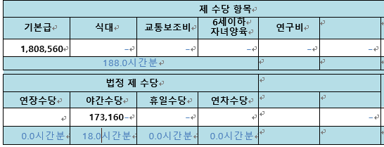 임금산정근로시간 188시간+야간18시간 해서 206시간 1,981,720이 맞나요?