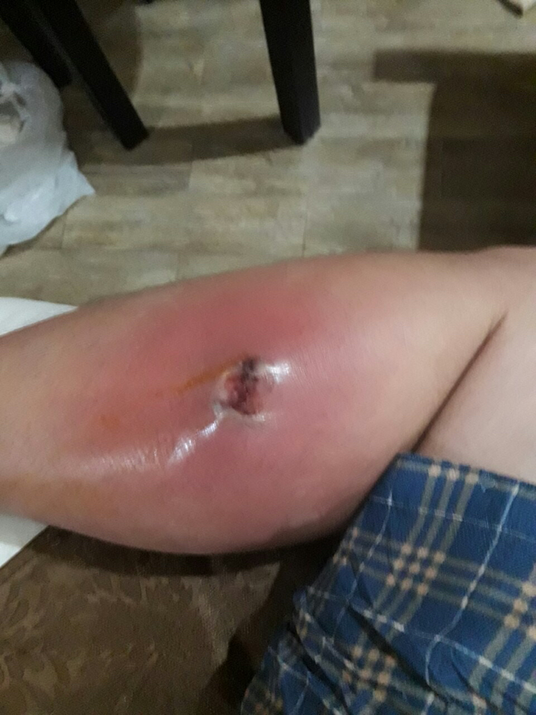 사진으로 봤을 땐 심한 종기와 함께 봉와직염이 매우 심하게 온 상태입니다.