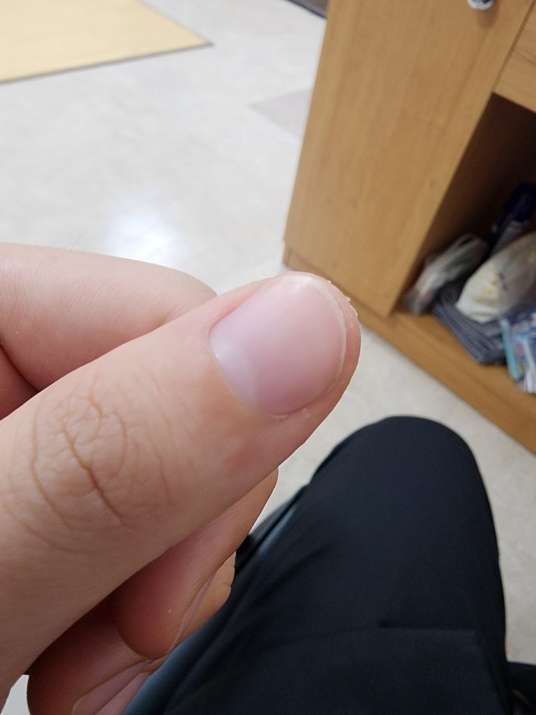 손톱이 사진이 잘 보이지 않아서 명확하지는 않네요. 다만 손가락 끝도 갈라져 있는 것을 고려하면 손톱 이영양증 같습니다. 평소에 물이나 화학 제품 등의 자극을 많이 주면 손톱이 변형될 수 있답니다. 정확한 확인을 위해서는 피부과에 가보시는 것이 좋습니다.