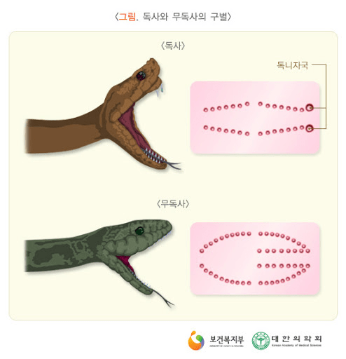 뱀에 물렸을 때의 상처자국을 보고 독사여부를 판단하기도 합니다.