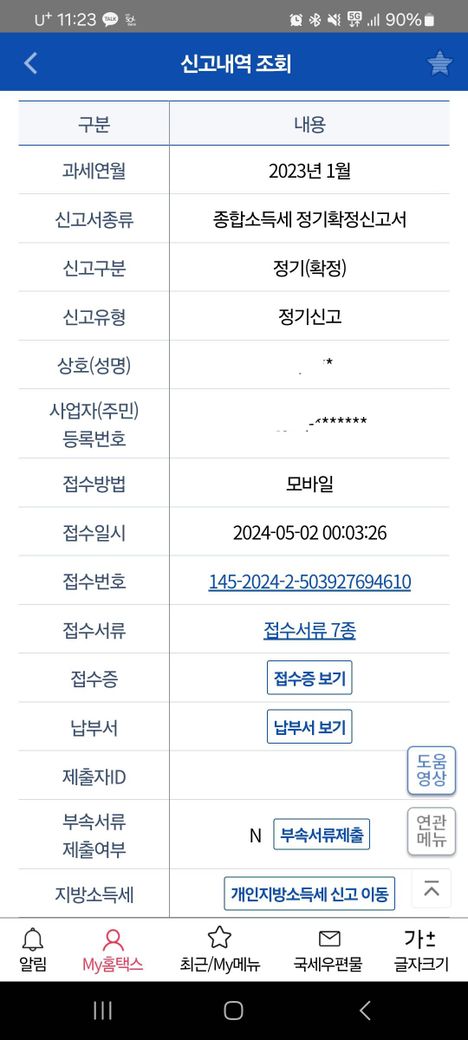 신고는 하셨지만 접수증 내역으로 보면 신고내용이 납부할 세액도, 환급받을 세액도 없는 것으로 신고된 상태입니다.