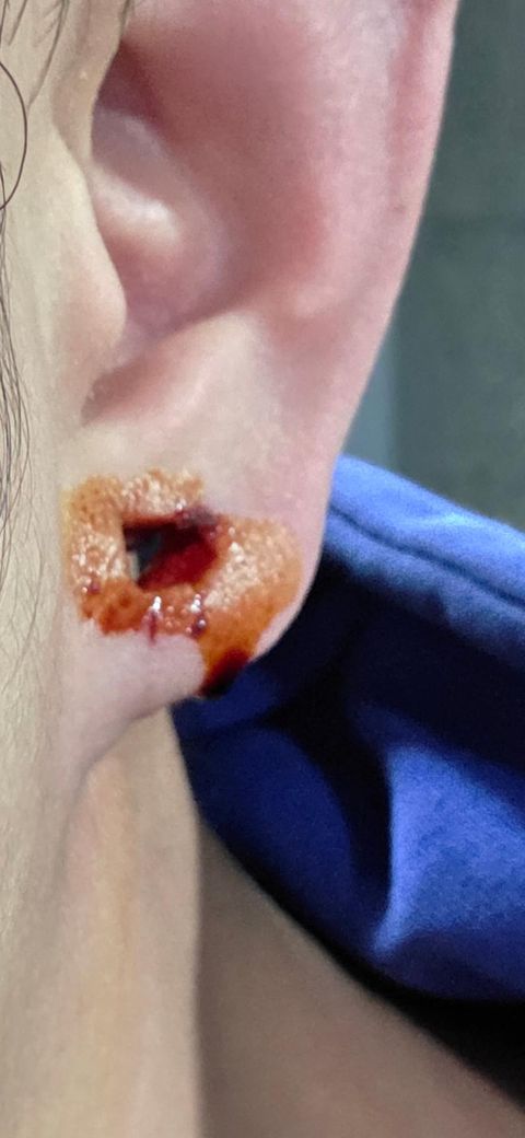 사진 기준으로 보면 봉합이 벌어져 있고, 내부 연부조직이 노출된 상태로 보입니다. 정상적인 “8일차 상처”라고 보기엔 벌어짐이 꽤 크고, 1차 봉합이 유지되지 못한 것으로 판단됩니다. 다만 이것만으로 의료과실이라고 단정할 수는 없습니다. 귓불은 긴장이 잘 생기고, 부위 특성상 혈관·조직 지지력이 약해서 봉합이 쉽게 벌어지는 편입니다.