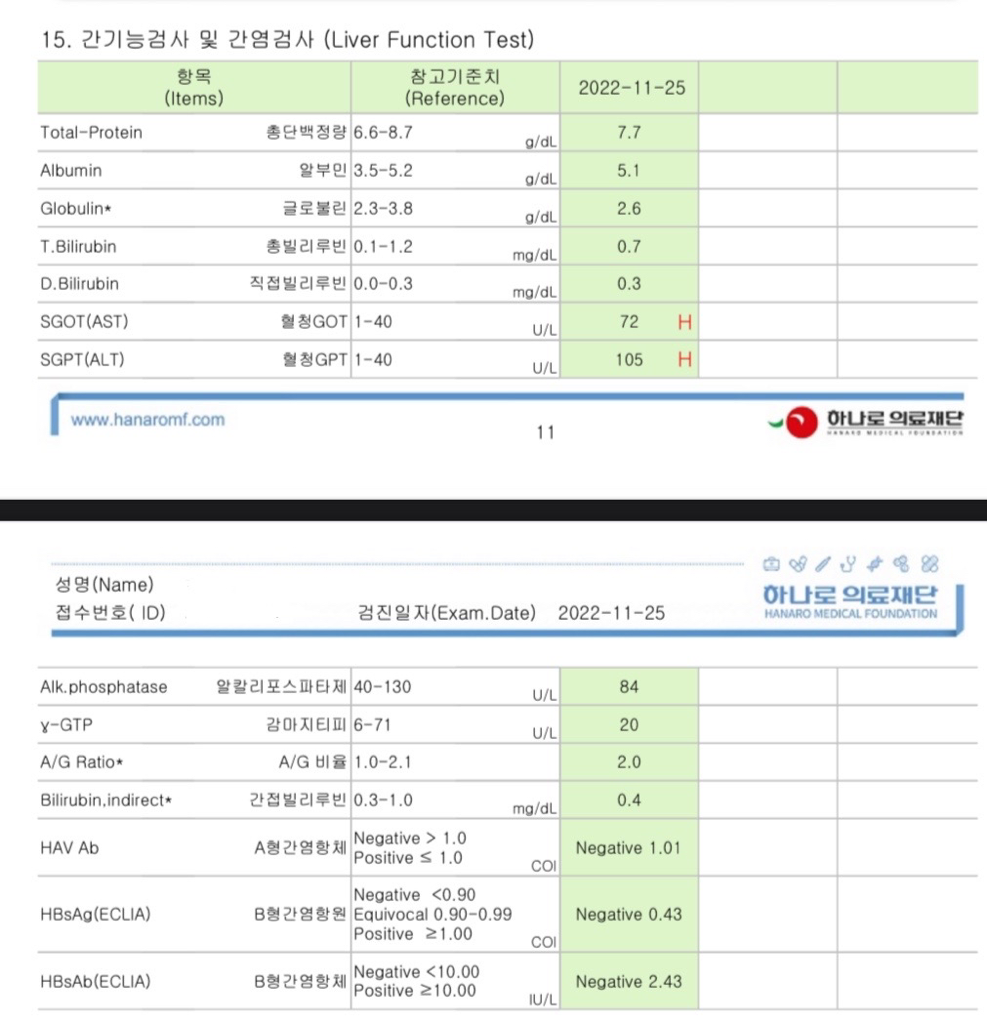 얼마 전 건강검진에서 간 수치가 100 이상으로(ALT 105, AST 72) 나와서 상복부 초음파 검사를 해봤는데, 이상이 없다는 소견을 받았습니다..!ㅜㅜ