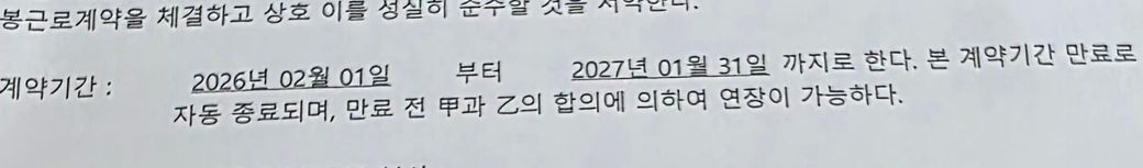 첨부된 자료에 근로계약기간이 2026.2.1 ~ 2027.1.31로 기재되어 있다면
