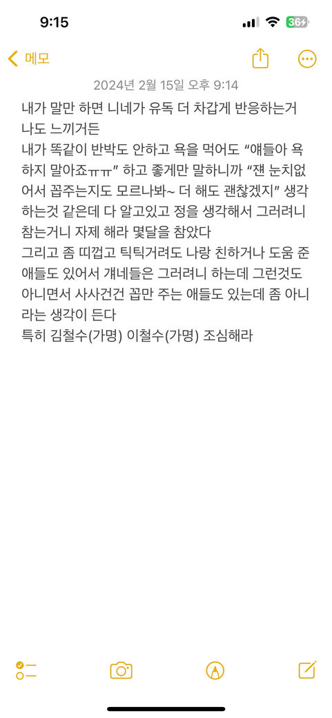 친구들끼리 있는 단톡방에서 애들이 저한테만 짗궂게 굴어서 참다가 이런식으로 말을 했어요