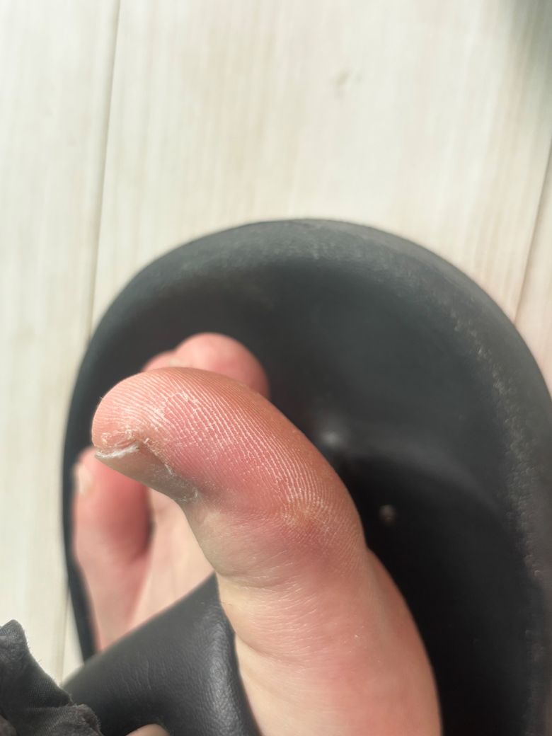 며칠 전 갑자기 엄지발가락 양쪽이 이렇게 변했는데 무좀인가요 ..? 가렵진 않은데 각질?이 생겼고 피부가 살딱 벗겨지는 상태입니다.