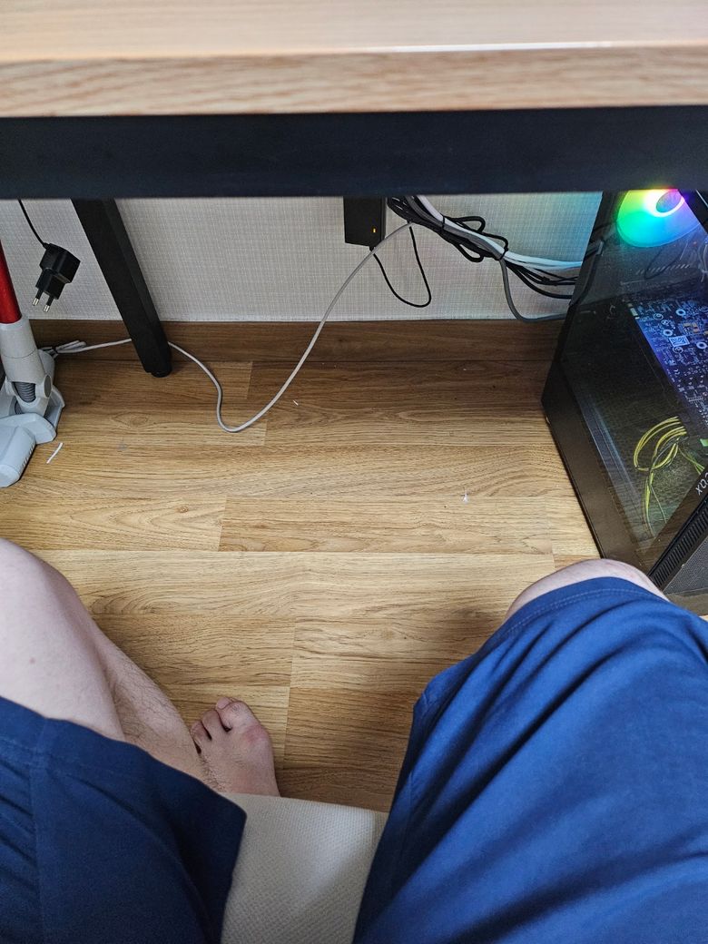 그래서 그러려니 하고 컴퓨터를 하고 있었는데 1분이 지났는데도 그래서 보니 저 왼쪽 흰색줄이 약간 누전이 있더라고요 그래서 얼른 다리를 떼고 그러기는 했습니다
