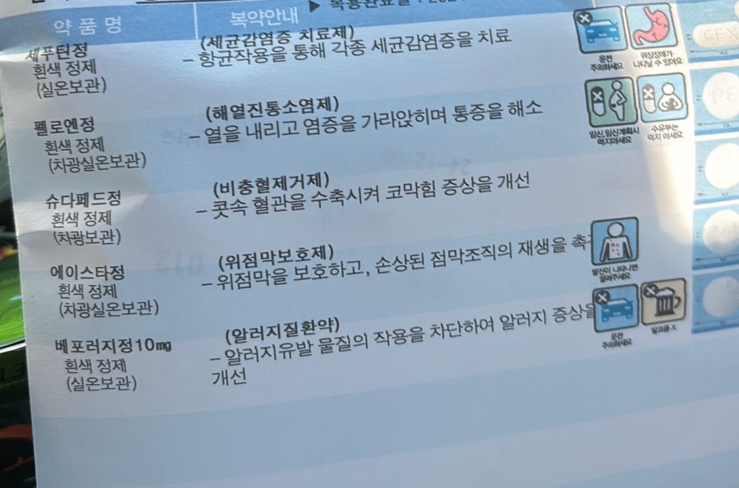 처방약인 <세푸틴정, 펠로엔정, 슈다페드정, 에이스타정, 베포러지정 10mg>과 이소트레티노인(Isotretinoin) 성분의 피지조절하는 여드름 치료제와는 특별히 주의해야할 상호작용이 없습니다. 따라서 병용하실 수 있는 약입니다.