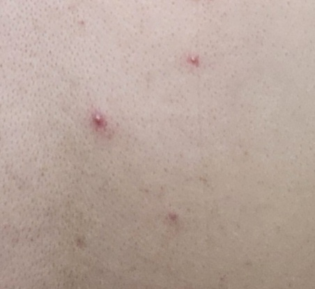 대상포진을 강력하게 의심할만한 군집된 수포성 병변이 아닙니다. 해당 사진을 보았을 때에는 대상포진이 아닐 가능성이 높습니다. 모낭염 같은 질환일 가능성이 더 높아 보입니다.