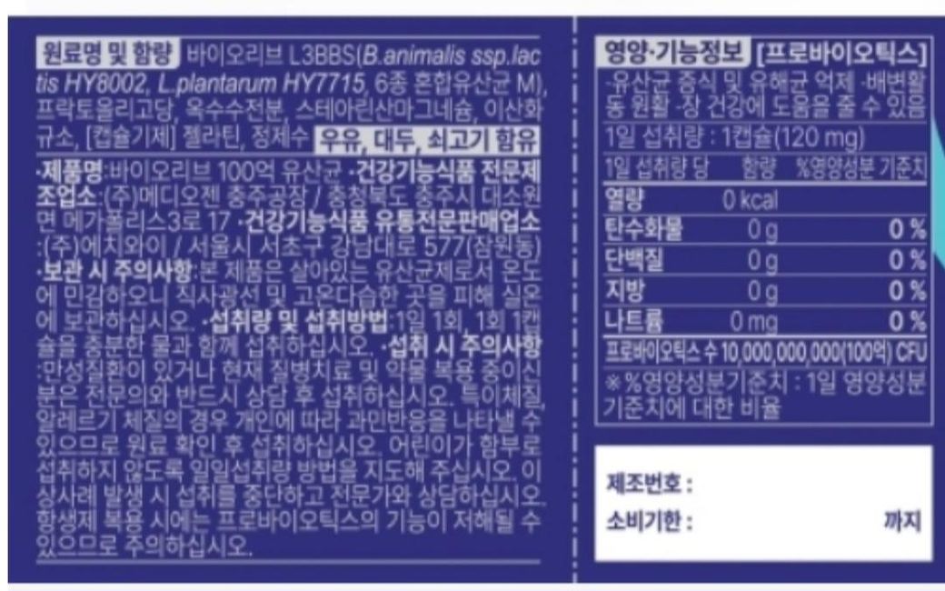 하지만 복용시 만약 가스가 더 차고 복통, 설사가 2주이상 지속되는 경우 맞지 않는 제품이기에 복용을 중단하길 권장드립니다.