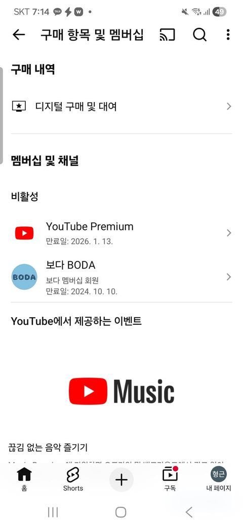 웹 브라우저에 접속하시고 로그인 후 유로 범버쉽 항목을 보시면 맴버십 관리 들어가셔서 비활성화(취소) 클릭합니다., 취소 사유 선택 후 다음, 맴버십 해지 버튼 누르면 완료입니다. 안드로이드 앱에서는 유튜브 앱 실행하시고 프로필 아이콘클릭합니다. 구매 항목 및 맴버십 - 유튜브 프리미엄 선택합니다. 맴버십 관리 들어가셔서 비활성화나 취소 클릭합니다. 사유 선택 이후 해지 완료합니다. 아이폰이시라면 애플 아이디 구독관리에서 취소해야합니다. 설정 - 애플 아이디 - 구독 -유튜브 프리미엄에서 구독 취소 하시면됩니다.