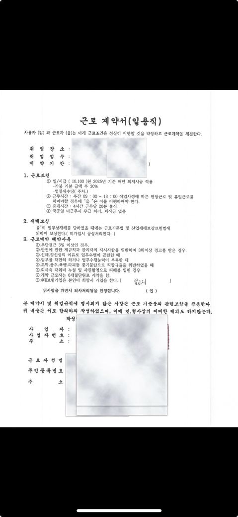 현재 일용직(1일만 근무하는 형태) 근로계약서를 체결하신 것으로 보입니다.