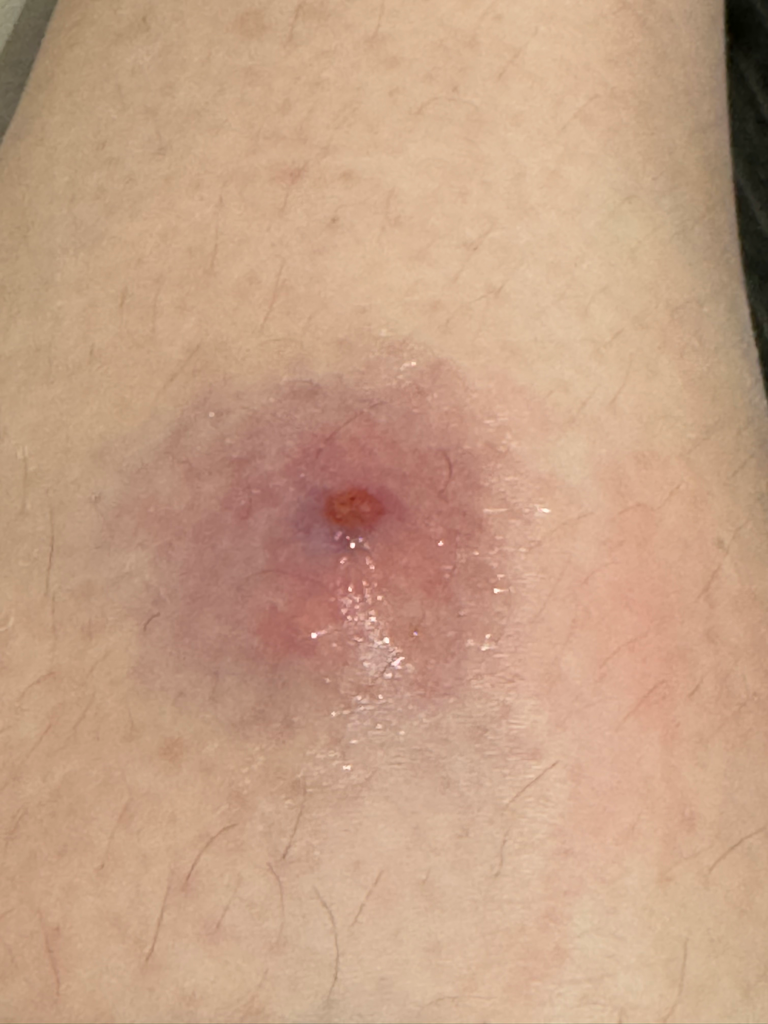 모낭염을 의심해볼 수 있는 병변으로 보이긴 합니다. 아직까지 염증이 있는 상태로 보이며 잘 관리해주면서 경과를 지켜보아야 할 것으로 사료됩니다. 계속 에스로반을 바르며 관리해보시고 혹시라도 증상이 심해진다면 약물 복용을 고려해보아야 하겠습니다.