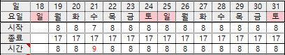 예정 근무표 첨부합니다.