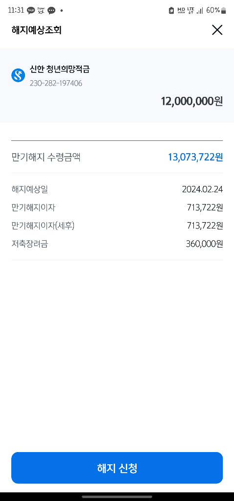 청년적금은 정부 지원사업으로 납입된 원금에서