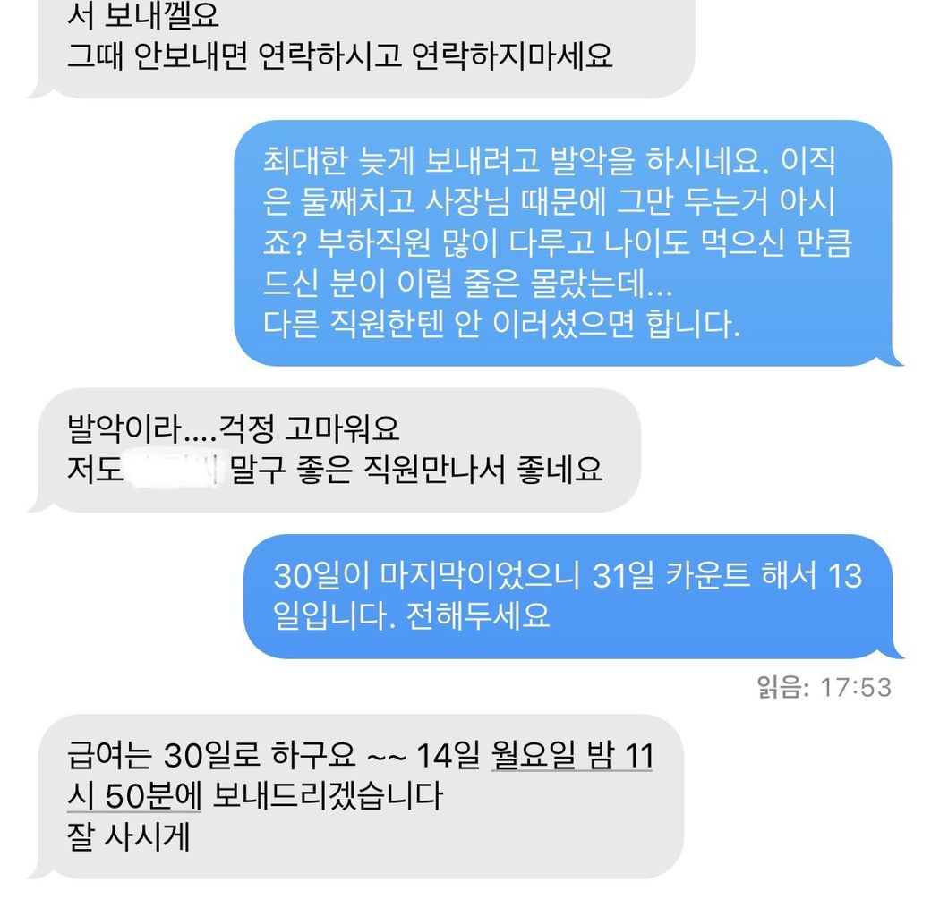 3일이 지나도 말이 없으시길래 월급 언제 보내주시냐 했더니 화를 내며 절차란게 있어!! 무례하게 하지 말고 기다려! 라며 오히려 저를 다그치시고요.