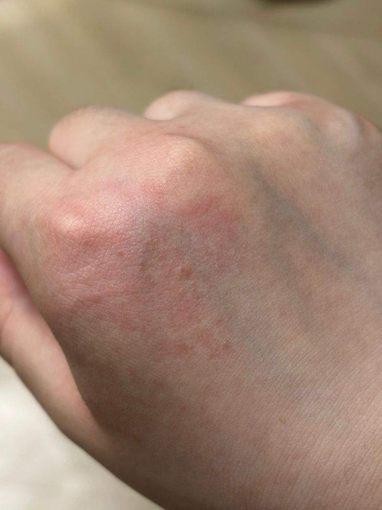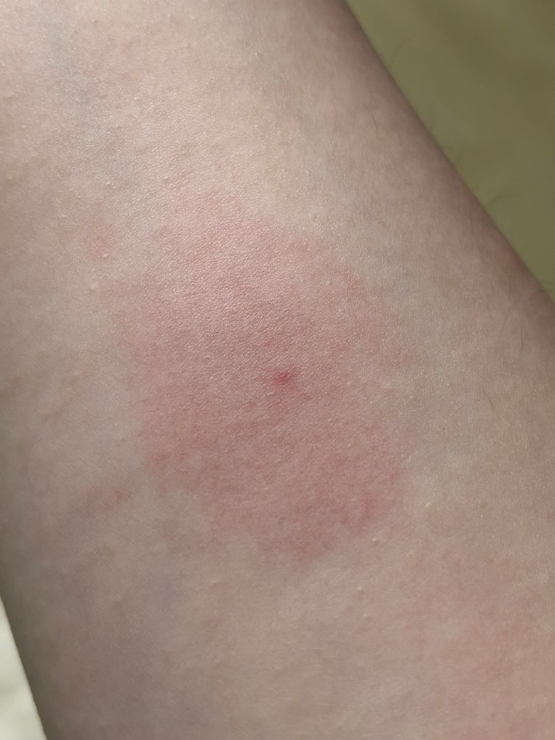 팔에 발진 있는 부분이 부었고 간지러우며 열이 있습니다