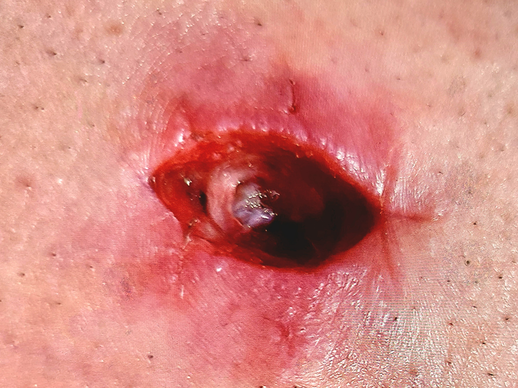 엉덩이 십자로 찢어서 고름 제거한 부위예요