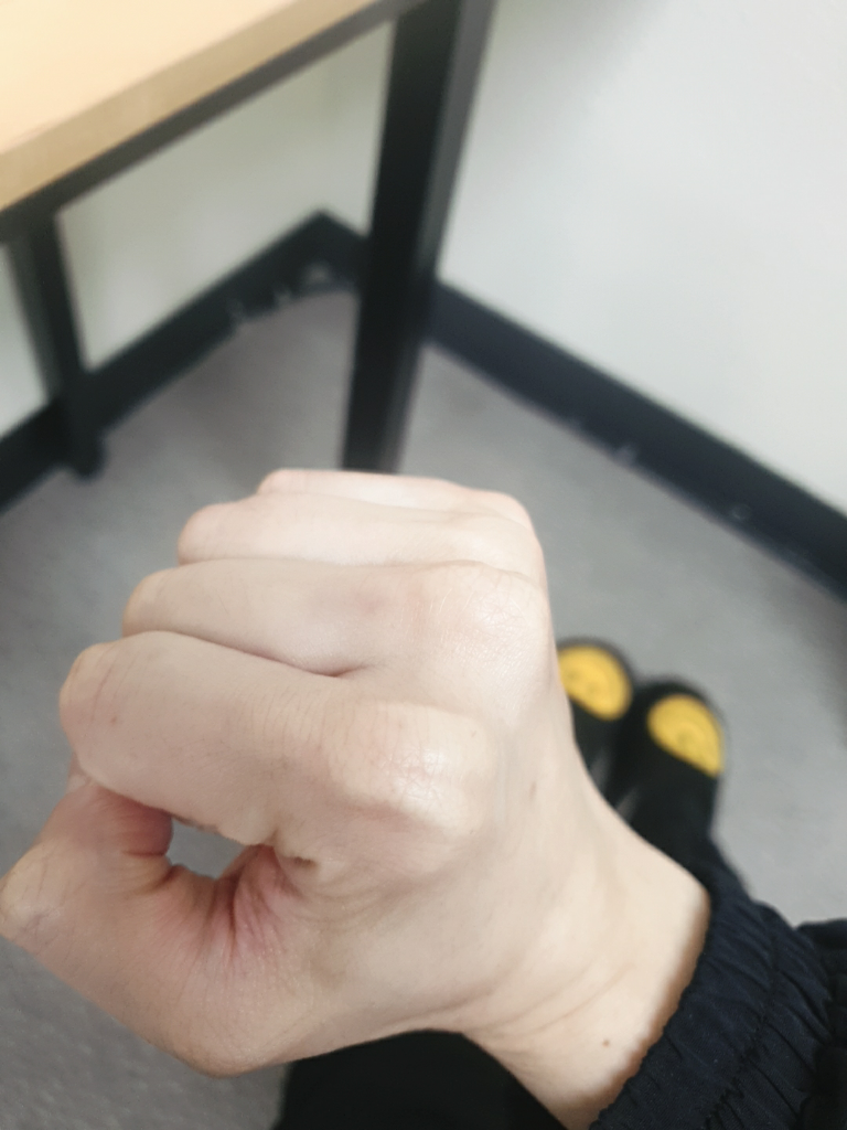 완전히 안굽혀지고 튀어나오는 듯한 느낌이 드신다면 관절내 유리체, 선천적 이상소견 등의 확인을 위해 가까운 정형외과에 내원하시어 엑스레이 검사를 받아보시는 것이 좋겠습니다.