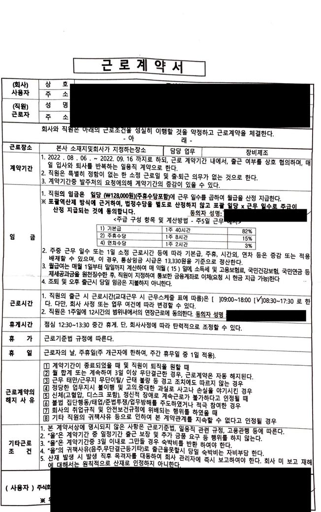 계약서 자체가 중요하지는 않습니다. 일용직 근로내용확인신고가 아닌 4대보험 취득신고가 된 상태에서 퇴사사유가