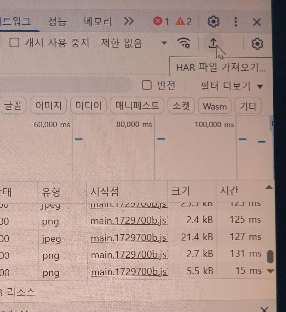 HAR 파일을 열어보시려는 거군요 HAR 파일은 웹 브라우저에서의 네트워크 활동을 기록한 파일이라서, 일반적인 영상 플레이어처럼 "재생"하는 형식은 아니에요. 대신, 해당 파일을 웹 개발 도구(F12 개발자 도구)에서 분석하는 용도로 사용합니다. 간단히 요약해서 설명드리면 Chrome이나 Edge 브라우저를 열고 F12 키(또는 우클릭 검사)를 눌러 개발자 도구를 여세요 상단 탭에서 "Network(네트워크)" 탭으로 이동하세요. 네트워크 탭 오른쪽 클릭 영역에서 "Import HAR..." 또는 "HAR 파일 가져오기"를 선택해 파일을 열 수 있습니다.가져오면, 당시의 요청/응답 목록이 타임라인과 함께 표시되고, 요청을 클릭하면 세부정보를 확인할 수 있어요. 도움이 되셧길 바래요