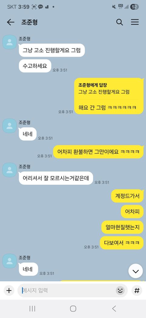 지가 현질더햇다하면서 환불안된다 이러고 전 잠금에관한건 1도 손을대지않앗습니다 무슨짓도 안햇규요 근데 뭐갑자기 고소한다니 계정잠금 지가 먹고 풀어달라니 현질 더달라 이러고 전 애초에 올보적긴햇는데 거래한 금액을 환불한다햇지 계정잠금먹고 풀어준다는말은 없엇고 현질금액까지 더쳐서 환불해뷴다 는 말도 없엇습니다 문제 생기현 해결해준다햇는데 저도 그래서 환불해쥰다햇는데도 지랄이네요 저분 형사고소하면 어칼까요 억울합니다 ㄹㅇ