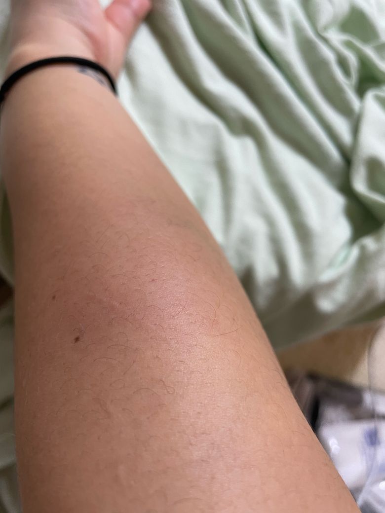 뭔가 팔이 가려워서 손 톱이 아닌 손끝으로 몇번 긁다 잤는데 아침에 일어나보니 모기막물려 부은자국처럼 있기에 모기 물렸나보다 했어요.