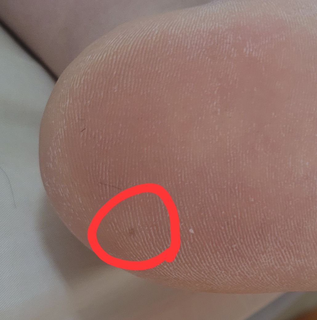 얼마 전 신발을 바꾸고 나서부터 맨발로 걸을 때 발바닥에 약간의 통증이 느껴져 보니 통증 부위에 미세하게 연한 점이 있었습니다.