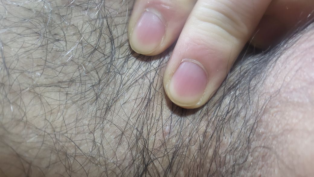 남성의 고환 옆 피부에서 물집이 느껴져요.