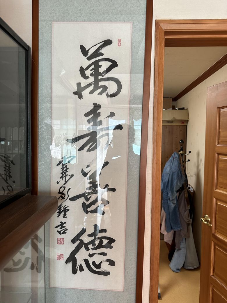 만수선덕(萬壽善德)입니다. 만수(萬壽)는 장수를 의미하는 오래오래 살다는 뜻이고, 선덕(善德)은 착한 마음씨 또는 바르고 착한 행동을 말합니다. 종합하면, 오래 살면서 착한 마음과 행동을 하겠다는 의지를 담은 글인 듯합니다.