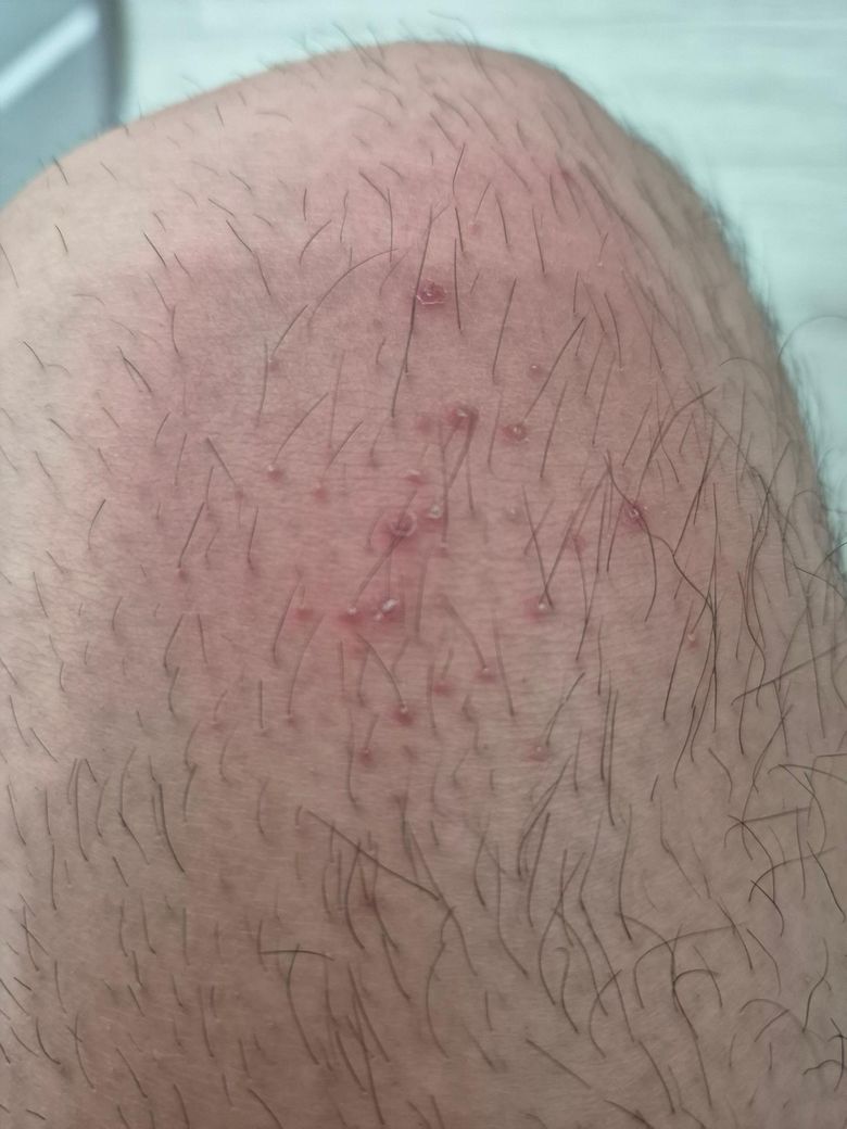 혹시 에이즈 증상인가요? 3일전부터 잘때마다 가렵고 저렇게 붉은 반점이 생겼습니다 그리고 저 붉은 부분이 가렵습니다