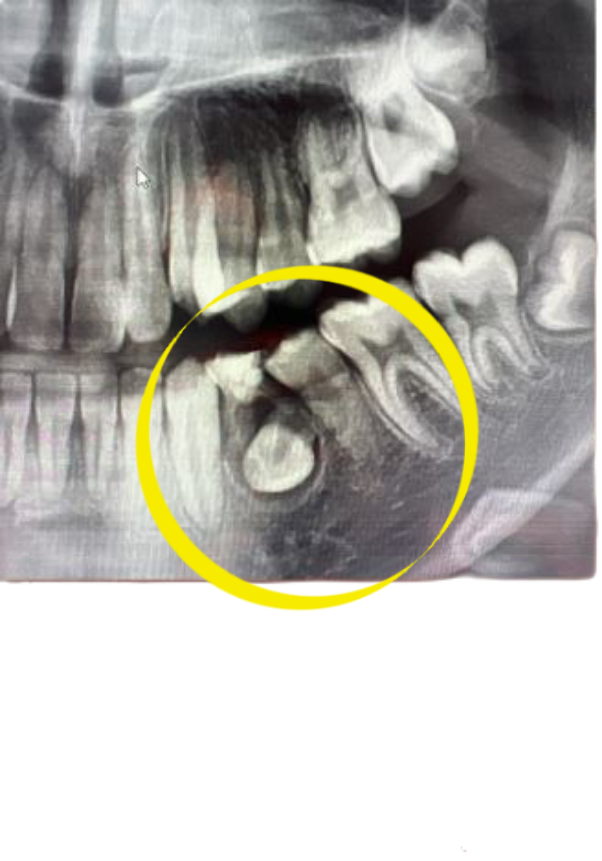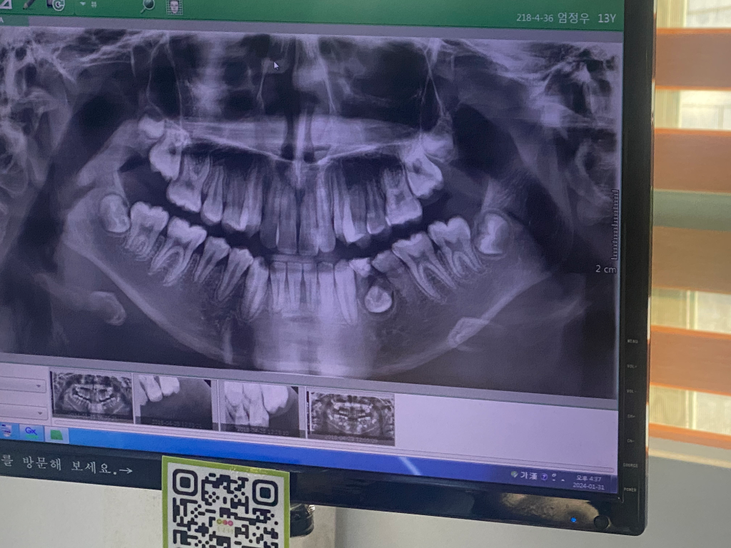 다만, 사진상으로 확실하진 않으나 영구치 치관(치아머리) 주위가 낭포가 형성된 것이 맞다고 병리학적으로 판단되면 영구치도 사용하기 어려울 수도 있습니다.