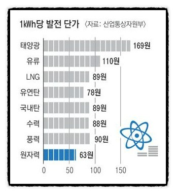 안녕하세요 전기를 생산하는데 효율성이 가장 좋은 것이 원자력이라고 들었습니다.