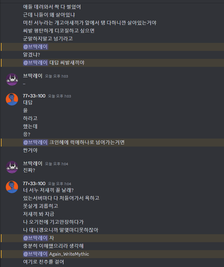 너 디스코드 ( 채팅에 나와있는 앱 )에서 활동 못하게 해주겠다