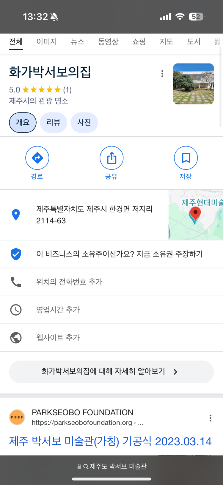현재 박서보 화백의 이름을 딴 '박서보 미술관'이 제주도에 건립 중이며, 완공 시기는 아직 알려지지 않았습니다.