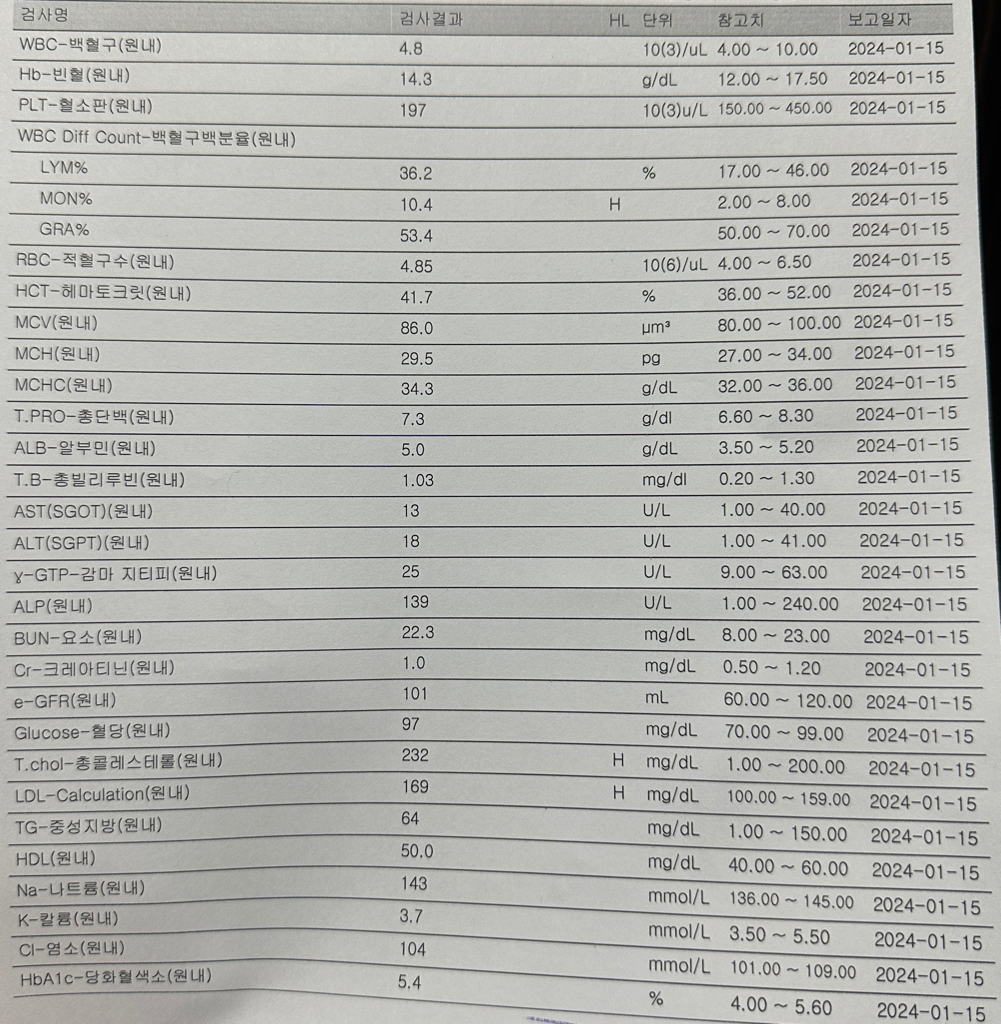 저번에 검사시에 LDL콜레스테롤이 169가 나와서