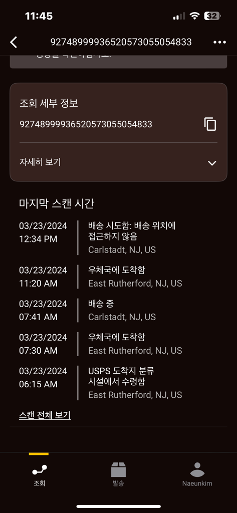 해당부분은 확인이 필요하지만 아마도 트래킹 넘버 에러로 인하여 발생한 듯 합니다.