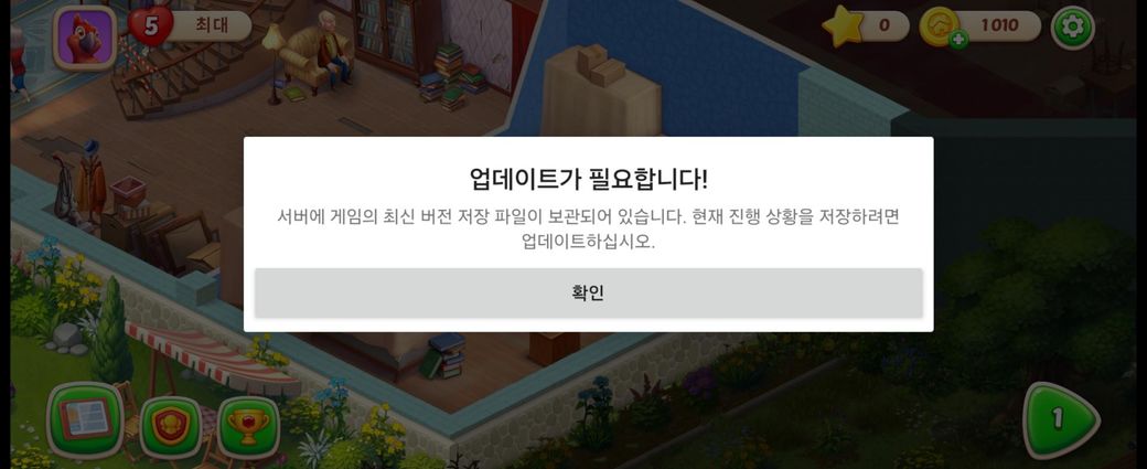 이렇게 뜨는데 갤럭시스토어들어가서 게임보면 업데이트문구가 안떠요.게임 삭제하고 다시 깔았는데 그전게임이 안뜨고 1부터 다식 시작이에요.업데이트를 해야되는데 방법아시는분ㅜㅜ
