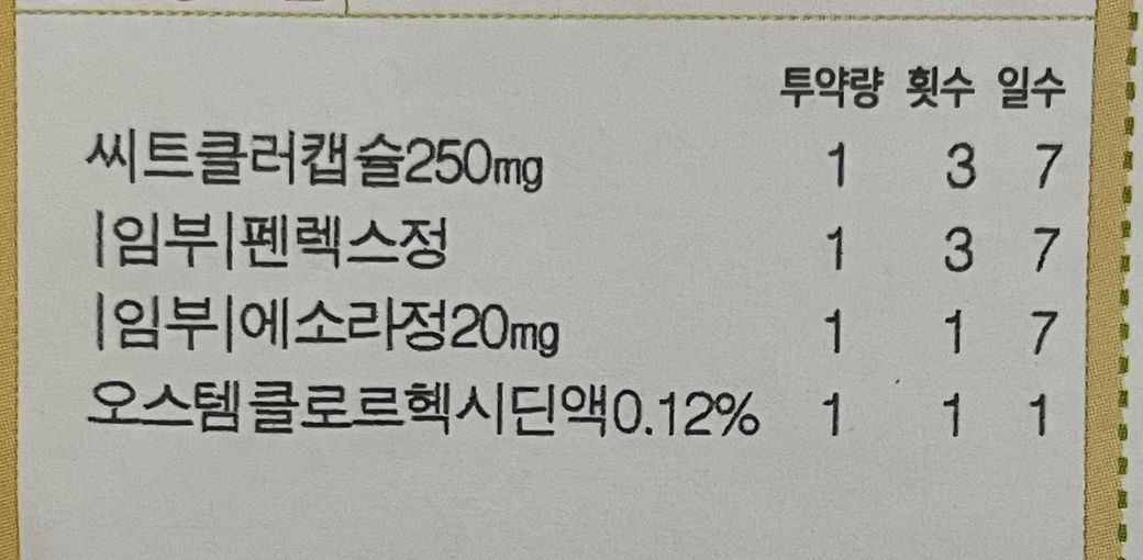 - 에소라정은 하루 1번 아침 식전에 1알을 복용하시고 씨트클러캡슐과 펜렉스정은 하루 3번 식후에 복용하시기 바랍니다.