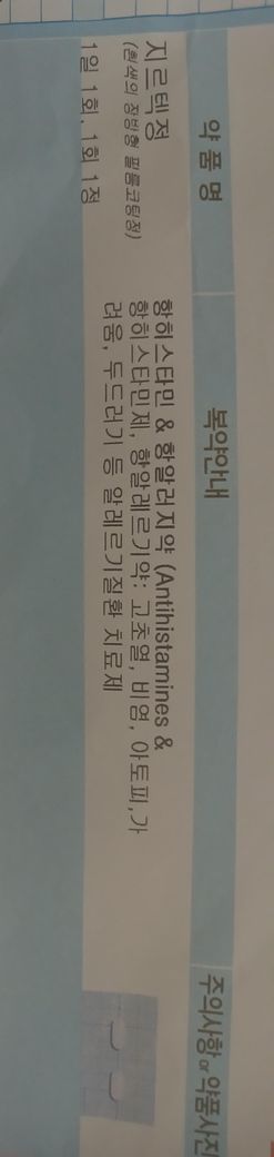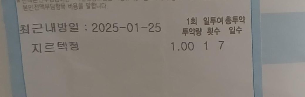 그리고 지르텍정은 병원에서 받은 약으로 하루 한알씩 3번까지도 먹은거 같은데요