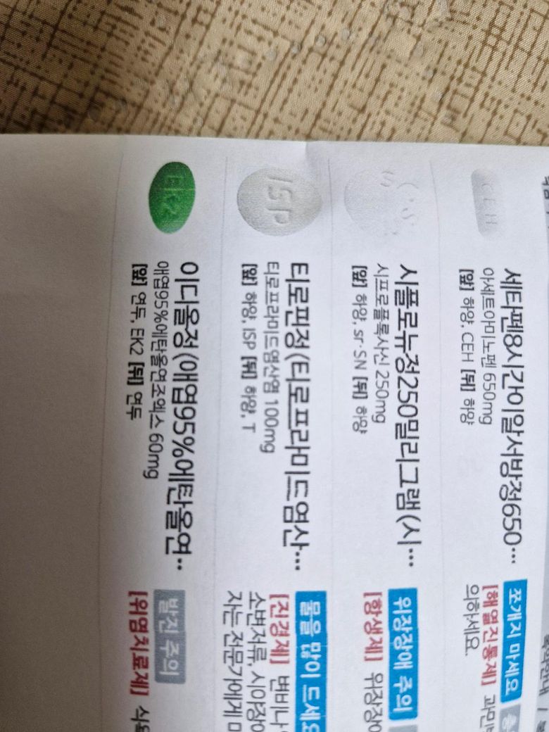 현재 복용 중인 약은 사진과 같고요, 항생제가 같이 포함되어 있다고 하는데 간단한 식사를 하고 먹는 걸 권유한다고 하시더라고요.