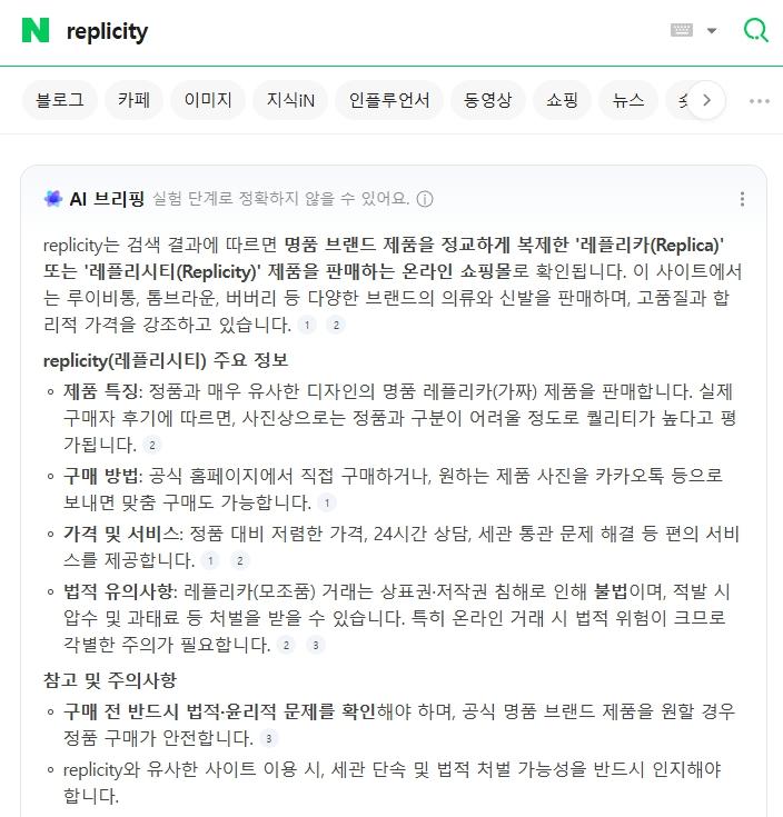 네이버 AI에서 레플리시티 검색 결과 입니다.