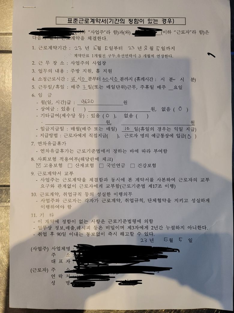 근로계약서 위반 여부 판단 문의 (아르바이트)