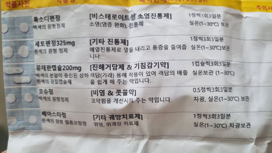 감기처방받은약먹고 속이 울렁거리는데 혹시 어떤약빼도될까요?