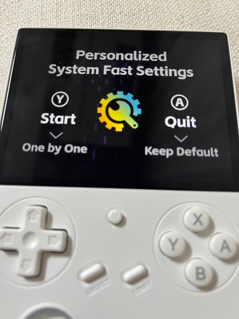 사용하시는 Anbernic RG40XX V 기기가 "Personalized System Fast Settings" 화면에서 멈추거나 반복적으로 부팅될 경우, 다음 조치를 시도해보세요.