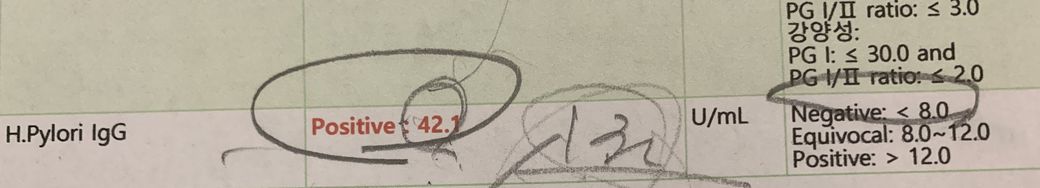 헬리코박터 항체 검사 결과 양성이라면 현재 헬리코박터에 감염되어 있거나 이전 치료를 받으셨던 기왕력이 있었던 경우입니다.