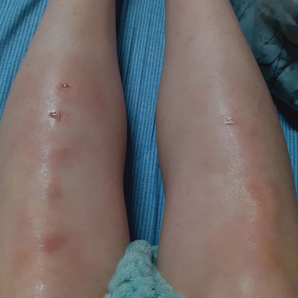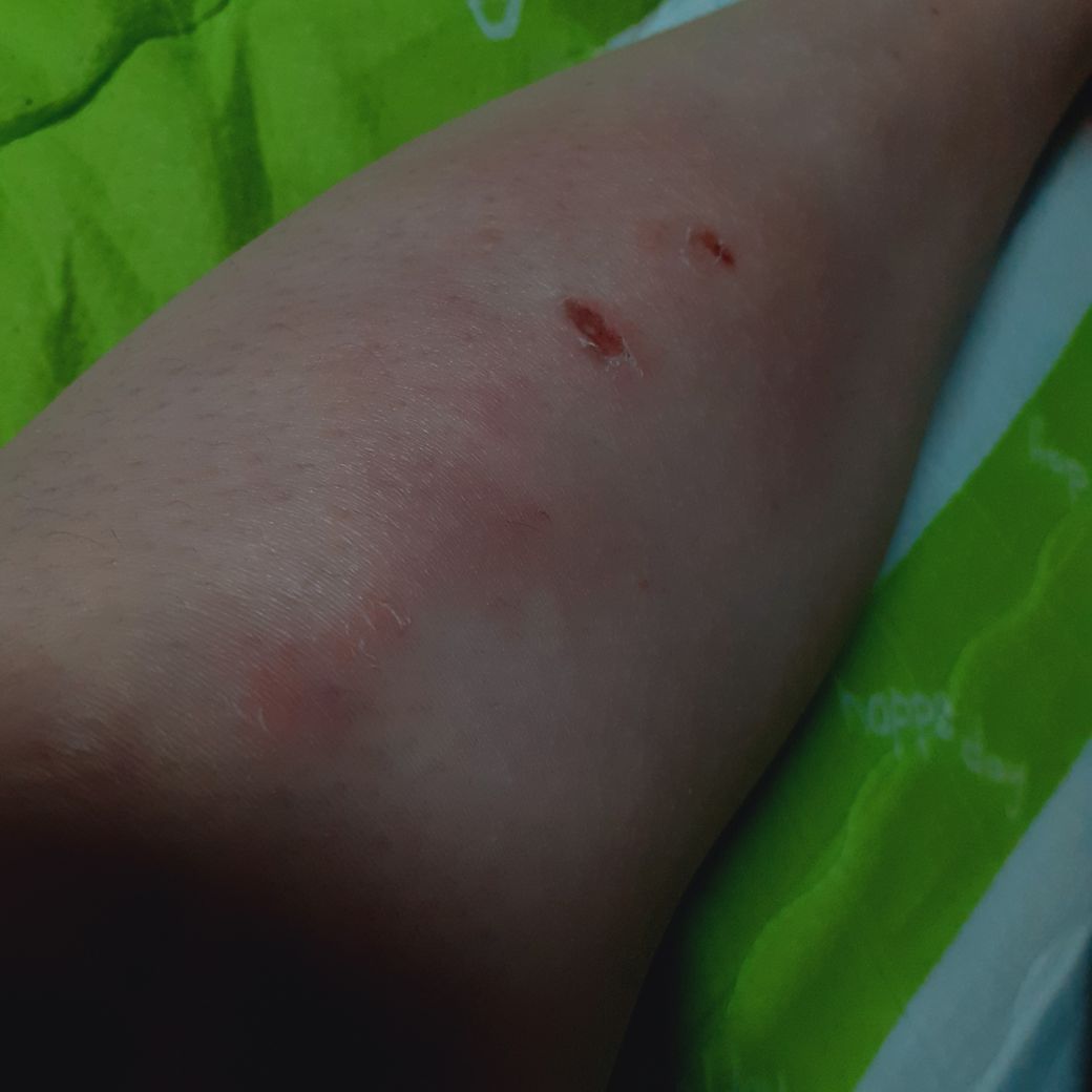 질문드려요 대장내시경을 하고 깨워서 깼는데 다리가 너무 아픈거에요 봤더니 사진처럼 상처가 잔뜩 나있는거에요(쑤욱 들어간 상처도 있고 까지고 멍들었어요)