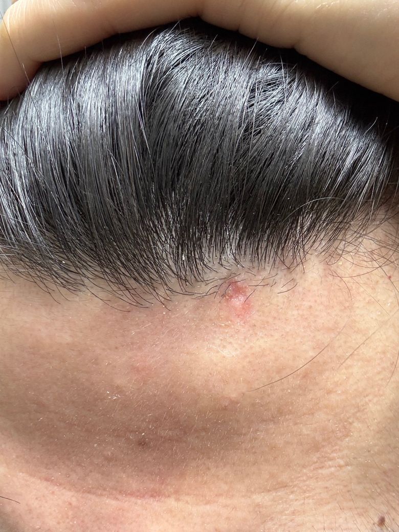 상처가 아물어 가는 과정처럼 보이는데 며칠 더 치료를 위한 연고 발라보시고 그 후에 흉터 연고 발라주시면 될듯합니다